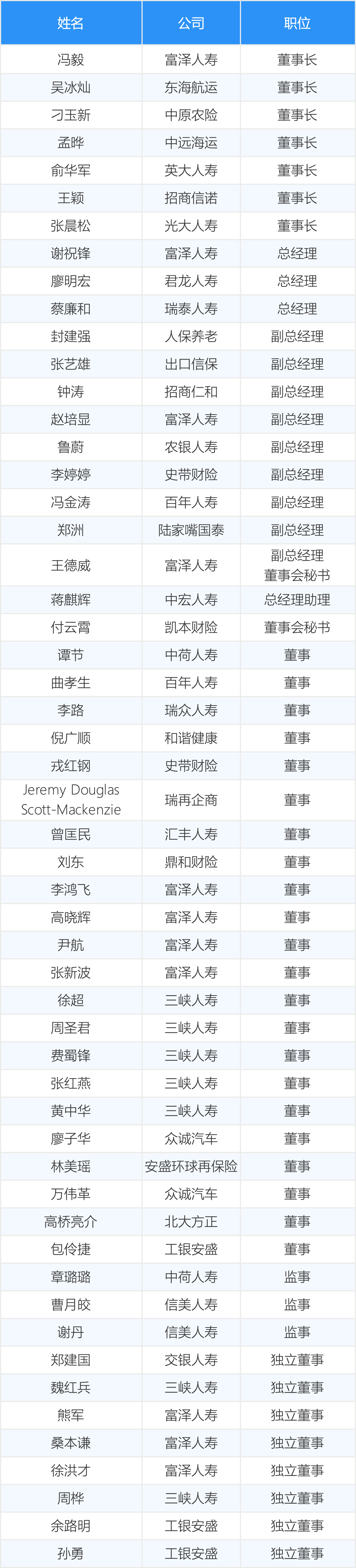 保险公司高管变动表